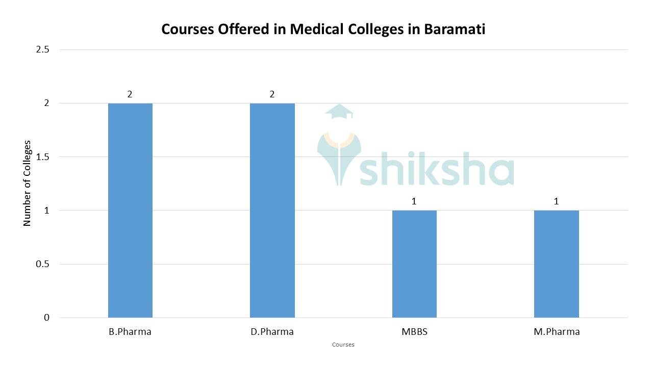 Baramati has only a few Medicine and Health Sciences colleges in the city. As per the eligibility, aspirants can pursue a Medical course from the colleges in Baramati. See the infographic below for a detailed overview of the courses offered by Medicine & Health Science colleges in Baramati:
