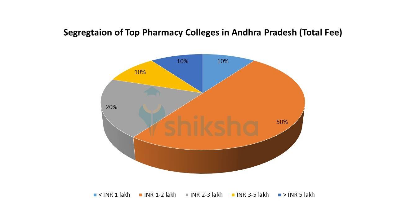Based on pie chart below, it is estimated that studying Pharmacy courses in Andhra Pradesh is economical. As, 50% of colleges has their annual fees ranging INR 1-2 lakh and some of them are: