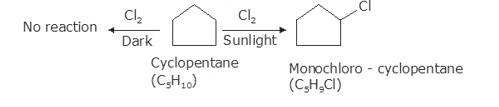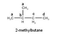 A 10.4 To have a single monochloride, there should be only one type of H-atom in the isomer of the alkane of the molecular formula C5H12. This is because of the fact that replacement of any H-atom leads to the formation of the same product. Therefore the isomer is 2,2-dimethylpropane. To have three isomeric monochlorides, the isomer of the alkane of the molecular formula C5H12 should contain three different types of H-atoms. Therefore, the isomer is n-pentane. It can be observed that there are three types of H atoms labelled as a, b and c in n-pentane as shown below : - To have four isomeric monochlorides, the isomer of the alkane of the molecular formula C5H12 should contain four different types of H-atoms in it. Therefore, the required isomer is 2-methylbutane. It can be observed that there are four different types of H-atoms labelled as a, b, c, and d in 2-methylbutane as shown below: - |