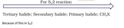 - The stearic hinderance in alkyl halides increases in the order of 1° < 2° < 3°, the increasing order of reactivity towards SN2 displacement is given as-