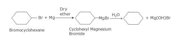 (i) Bromocyclohexane is reacting with the metal Mg to give organo-metallic compound/Grignard reagent