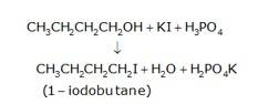 (a) 1-butanol is treated with KI in the presence of H3PO4 where the OH is being replaced by the iodine and gives H2O and KH2PO4 as the by-product with 1-iodobutane as the final