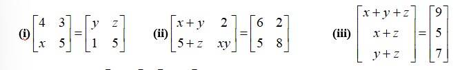 9.Which of the given values of x and y make the following pair of matrices equal: