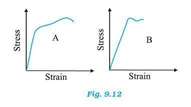 Ans.9.3 Material A has greater Young’s modulus. Material A is the strongest as it can withstand more strain than material B without fracture. |