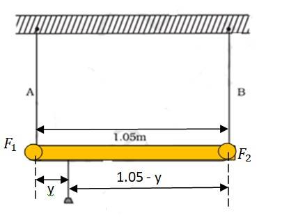In order to produce an equal strain in the two wires. The mass should be suspended at a distance of 0.432m from the end A