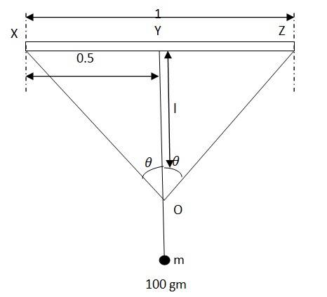 A mass of 100 gm is suspended at the midpoint.