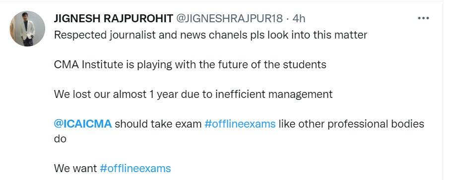 ICMAI students demand offline exams; ask for clarity on Twitter