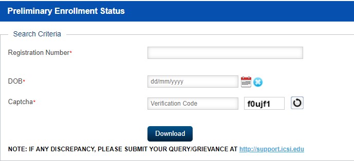 Note- for any query/grievances candidates may contact at- http://support.icsi.edu