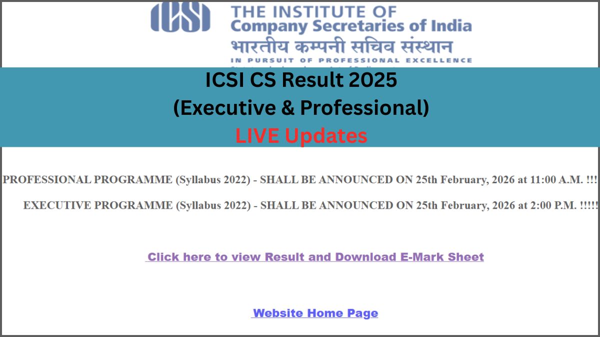 ICSI CS Result 2025 LIVE: CS Professional Result Date for Dec 2025