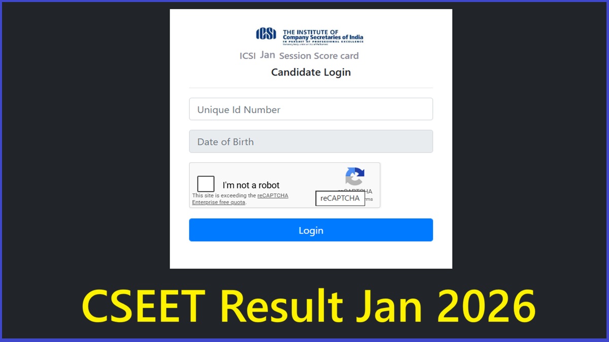 The Institute of Company Secretaries of India will declare CSEET result Jan 2026 soon at cards.online-ap1.com. Only candidates who have appeared for CSEET Jan 2026 exam can download scorecard by entering their application number and date of birth. ICSI administered CSEET January 2026 exam in remote proctored mode on January 10 and January 12.