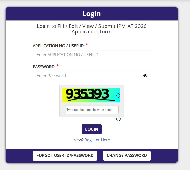 IPMAT 2026 Admit Card Login Window Snapshot
