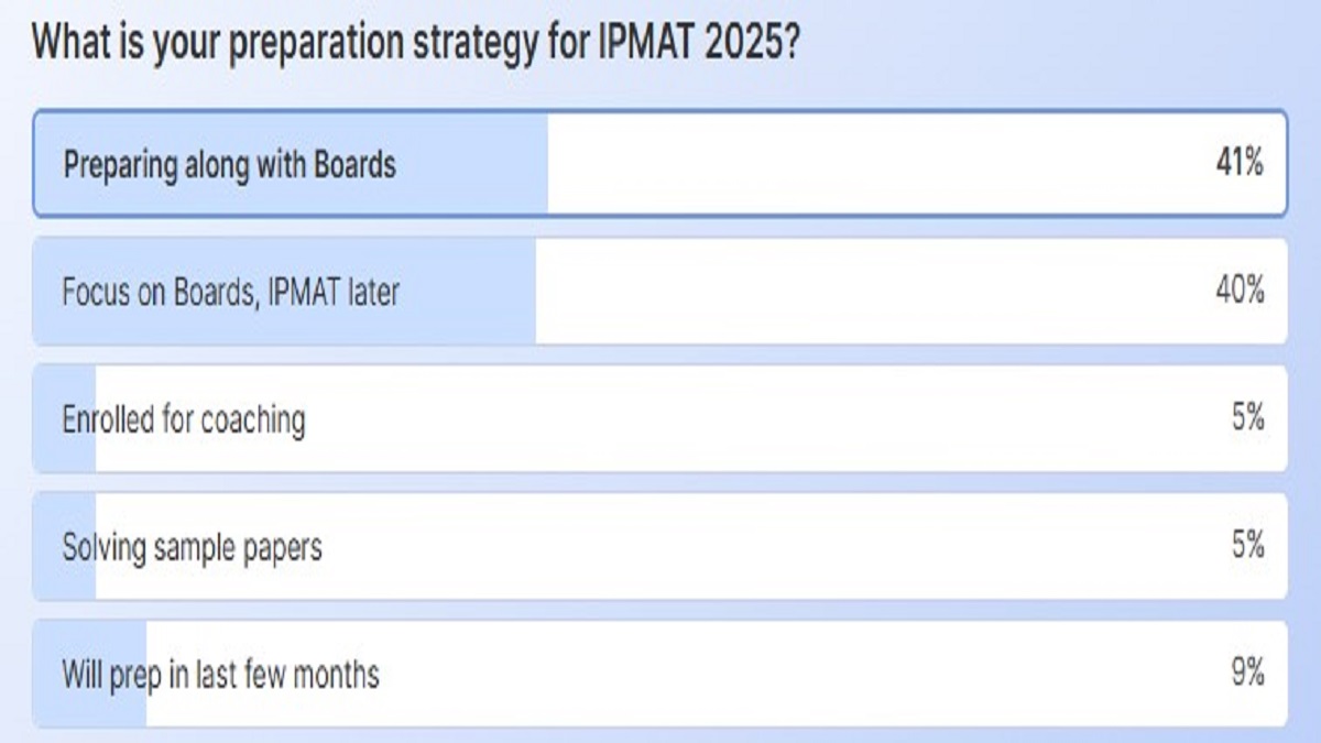 Shiksha conducted an exclusive poll to shed light on how students are balancing their board exams and IPMAT preparation. According to the ongoing poll, it has been revealed that there is a diverse mix of preparation approaches:
