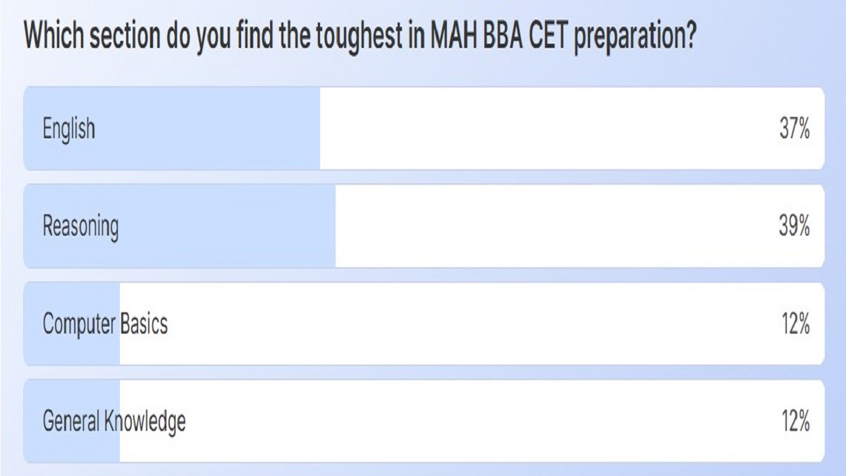 Also, 12% of aspirants find the GK section the toughest among the four sections of the MAH BBA CET syllabus.