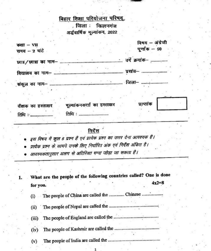 Citing the example of China, the question paper asked "As the people of China are called Chinese, what are the people of Nepal, England, Kashmir, and India called?" According to the reports, the question paper was allegedly distributed to students in Araria, Kishanganj and Katihar.