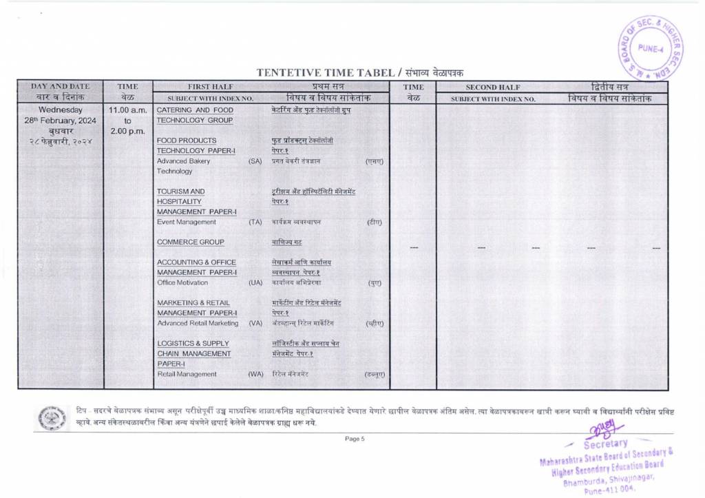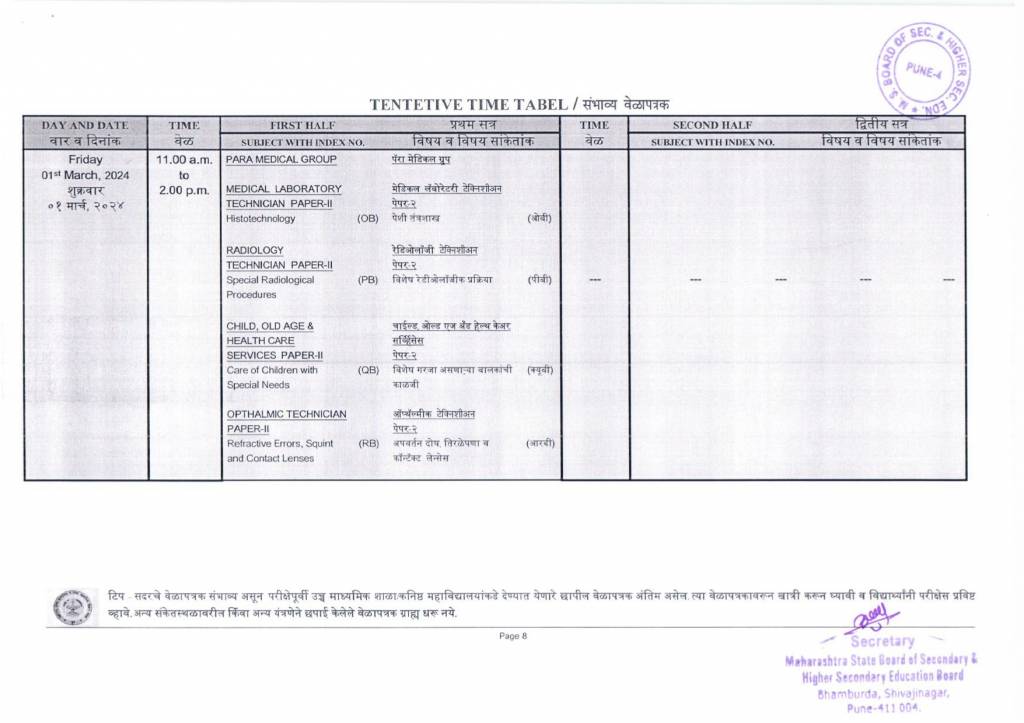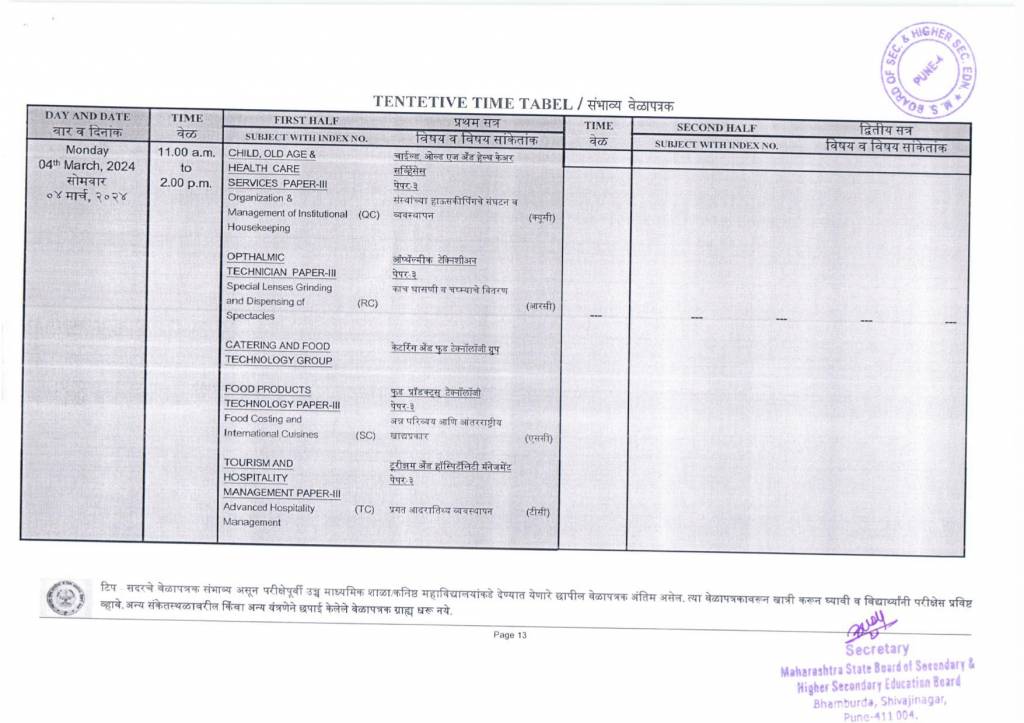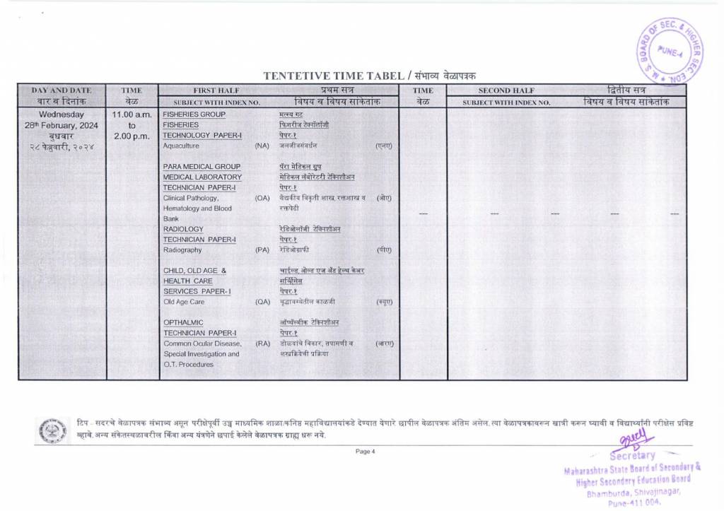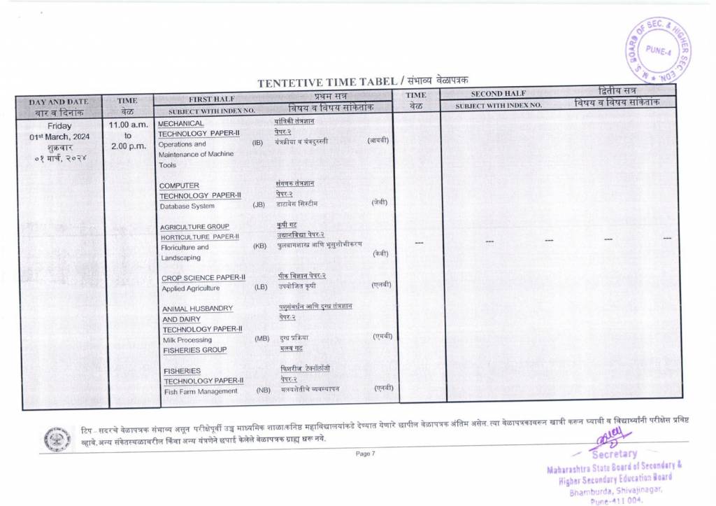 | Maharashtra Board HSC Vocational Timetable 2024 |