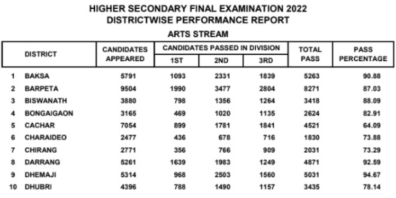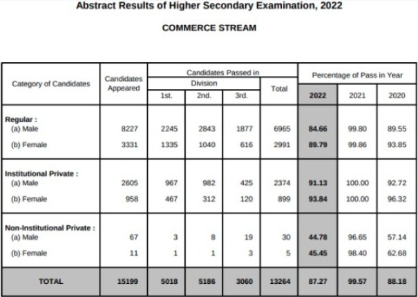 HS result 2022 Assam Commerce: Commerce stream statistics