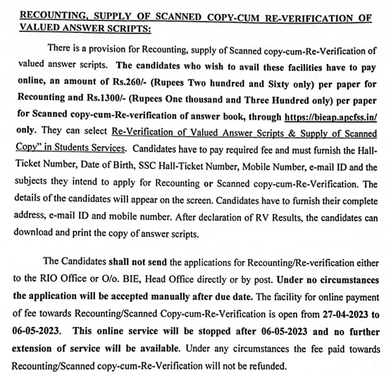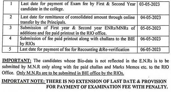 AP 1st and 2nd year Vocational and General students who wish to sit for the AP Inter Supplementary Exams 2023 scheduled between May 24 and June 1 can check the rates and due dates of the examination fees below: