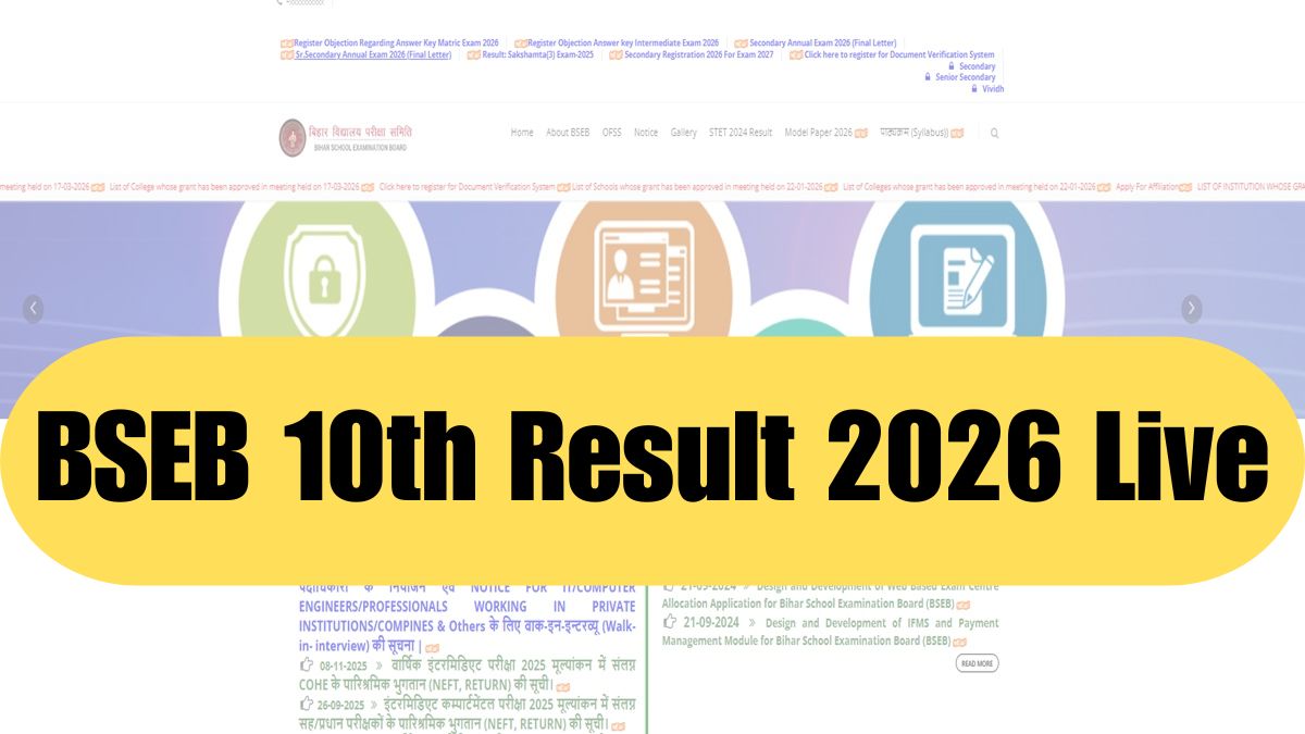 Bihar Board 10th Result 2026 will be announced by Mar 31. The result will be made available at biharboardonline.bihar.gov.in. Students can download BSEB 10th result 2026 by logging with the roll number. Get the BSEB Matric result 2026 live updates below.