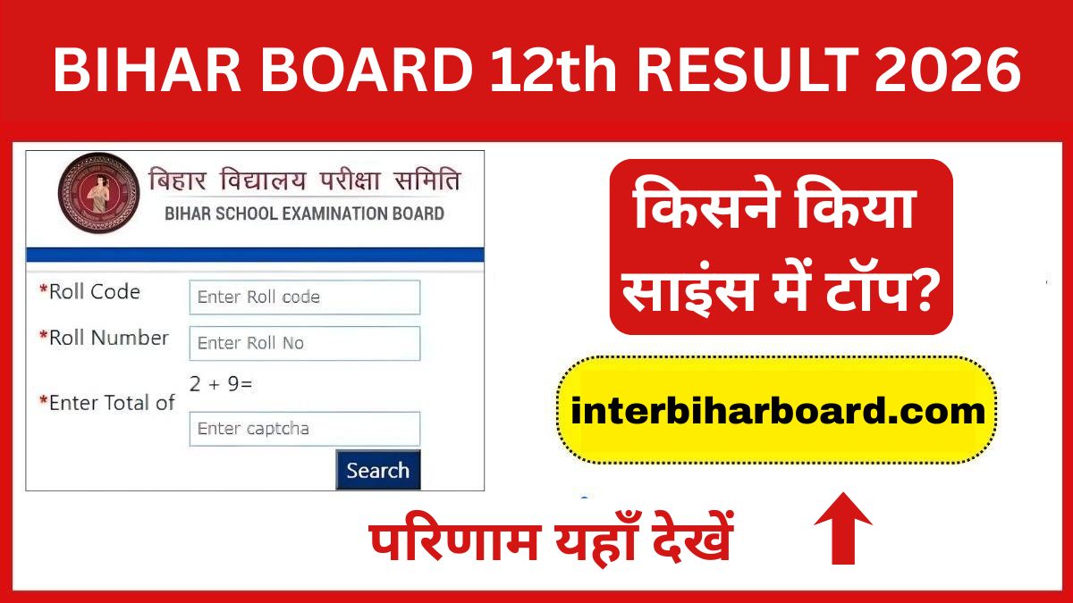 The Bihar School Examination Board (BSEB) has announced the Bihar Board 12th result 2026 for Science stream. One Male student has topped the BSEB 12th science exam 2026. Students who appeared for the Intermediate Science exams can now check their BSEB inter result 2026 at interbiharboard.com. This year, the Bihar Board intermediate result 2026 for the Science stream has shown an excellent performance, with a really good pass percentage and outstanding scores by toppers. The Bihar Board science topper list 2026 has been released by the BSEB Chairman through a press conference.