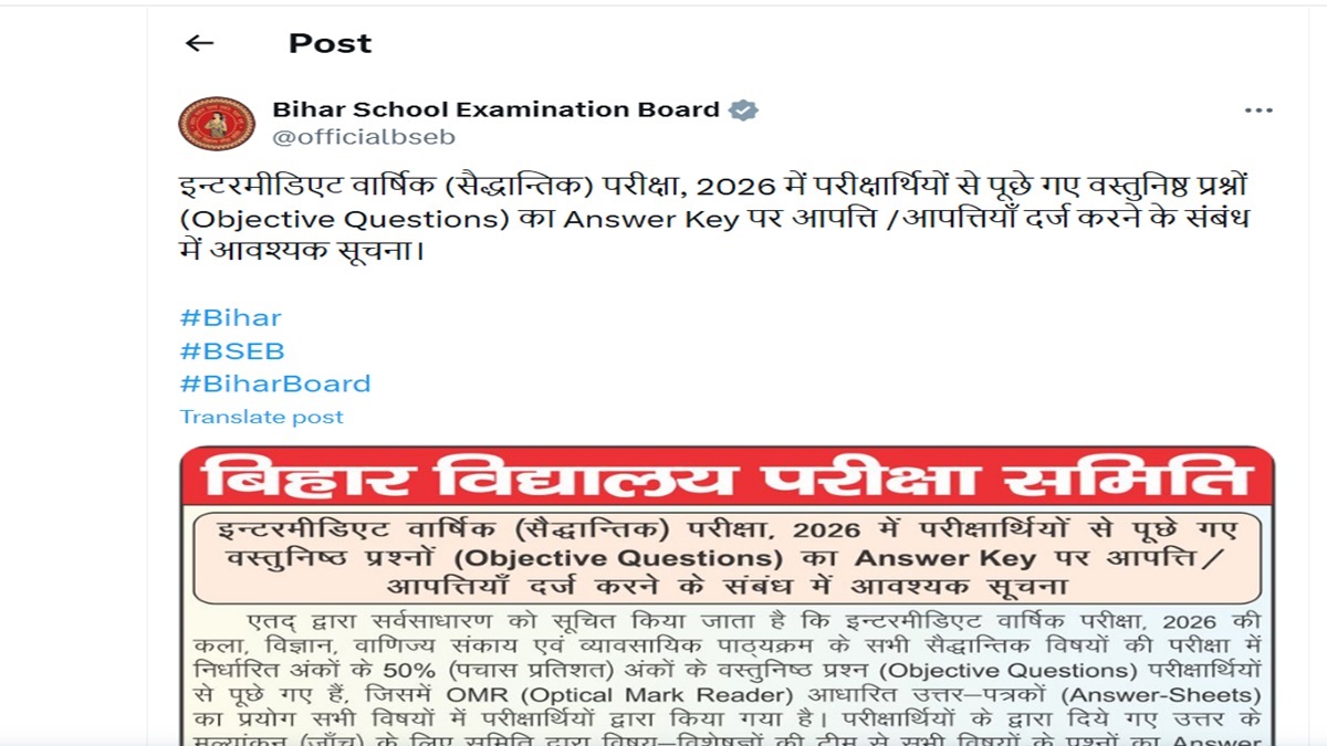 The Bihar School Examination Board (BSEB) has released Bihar Board Class 12 Answer Key on February 28. The answer key covers all theoretical subjects across Arts, Science, Commerce and Vocational streams. These answer keys have been prepared by a panel of experts. Students can submit objections against the answers or questions from February 28 to March 6 (5 pm). Objections received after the deadline will not be considered. The Board will review the objections and issue a revised answer key.