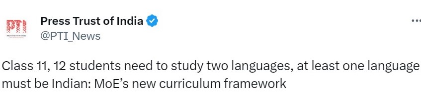 The Ministry of Education (MoE) has announced some major changes in the education system. Stating that the New curriculum framework is as per New Education Policy 2023 (NEP 2020), it said that textbooks would be developed for 2024 academic session. It said that students of Class 11 and 12 need to study two languages, and at least one of them must be Indian.