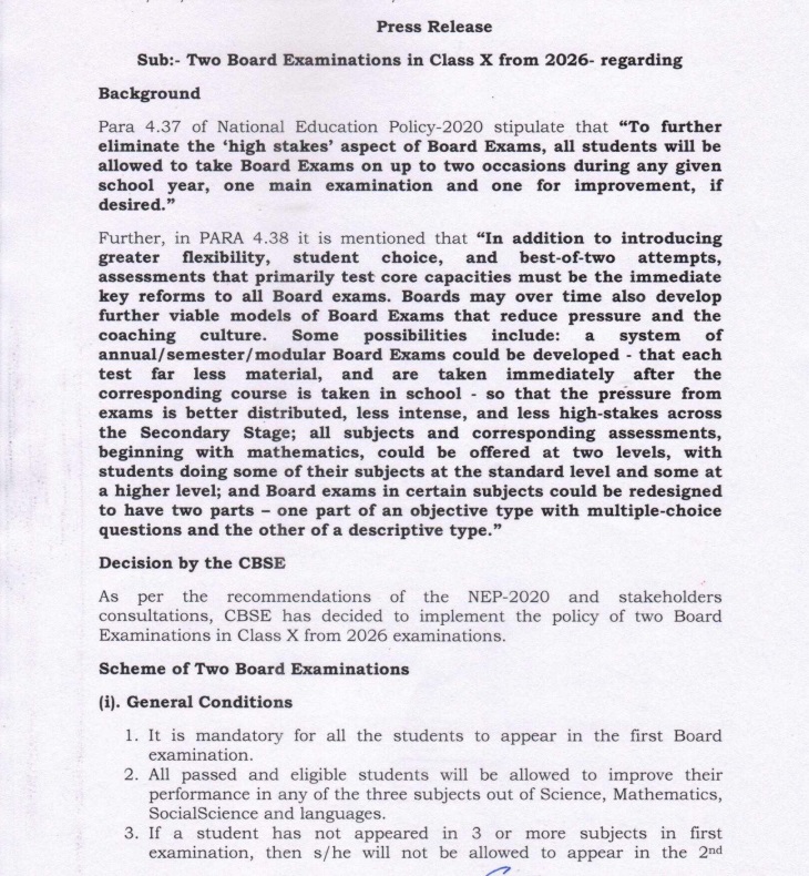 The CBSE has emphasized that this move is part of a larger shift toward modular and flexible assessment systems, where performance pressure is minimized and students are given multiple chances to excel.