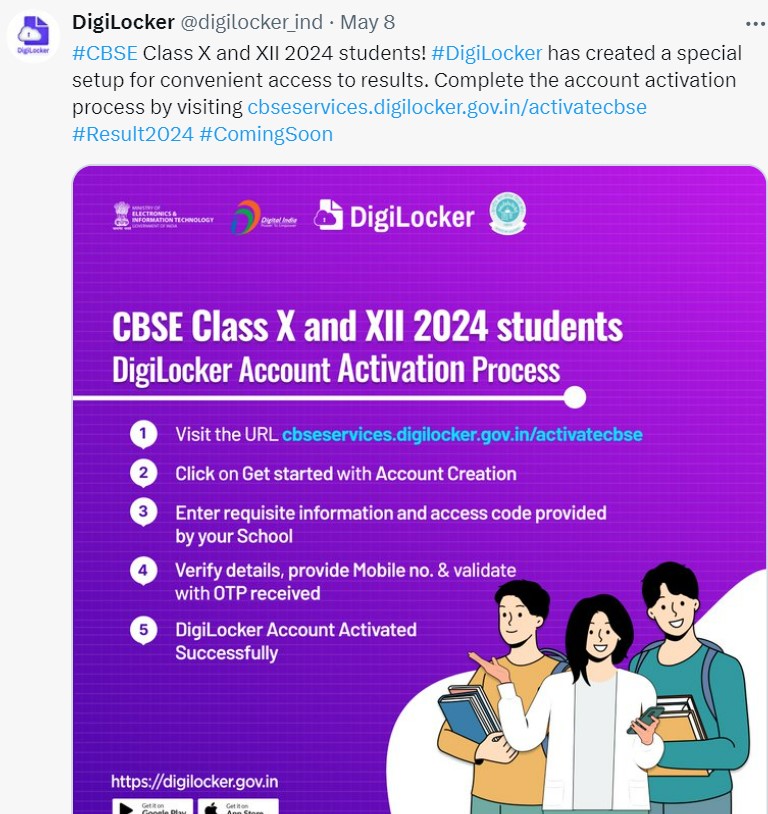 CBSE Result 2024 Class 10, 12 date and time is expected to be out shortly. latest post on DigiLocker reads."#CBSE Class X and XII 2024 students! #DigiLocker has created a special setup for convenient access to results. Complete the account activation process by visiting cbseservices.digilocker.gov.in/activatecbse #Result2024 #ComingSoon".