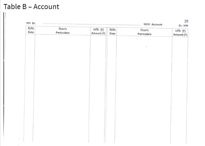 In the notice shared with schools, the board has also shared the sample of the said formats. The images of the same are provided below. The answer sheets would have a total of eight tables of journal and eight tables of accounts in the answer sheet. Table A would be printed from Page no. 17 to 24 of the answer sheet while Table B would be printed from Pages 25 to 32.