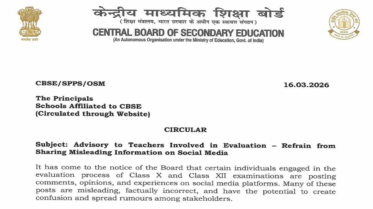 The board has clearly stated that any attempt to spread rumours or misrepresent facts online may lead to disciplinary action against the concerned teachers. CBSE has urged evaluators to act responsibly and avoid any activity that could harm credibility of exam system. The advisory is released, as CBSE continues the evaluation of answer sheets for exam, after which it will prepare CBSE results 2026 for class 10 and 12 students.