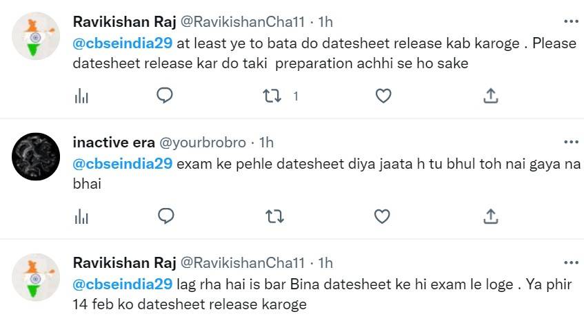 Students have taken to Twitter and are continuously tagging and asking the Board about the CBSE date sheet 2023 date and time. Let’s take a look at some of latest tweets posted by students and teachers asking about CBSE Board Exams 2023 dates: