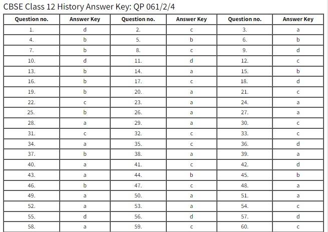 Students can use this answer key to calculate their probable score in History exam. The answer key of Class 12 History CBSE is given below: