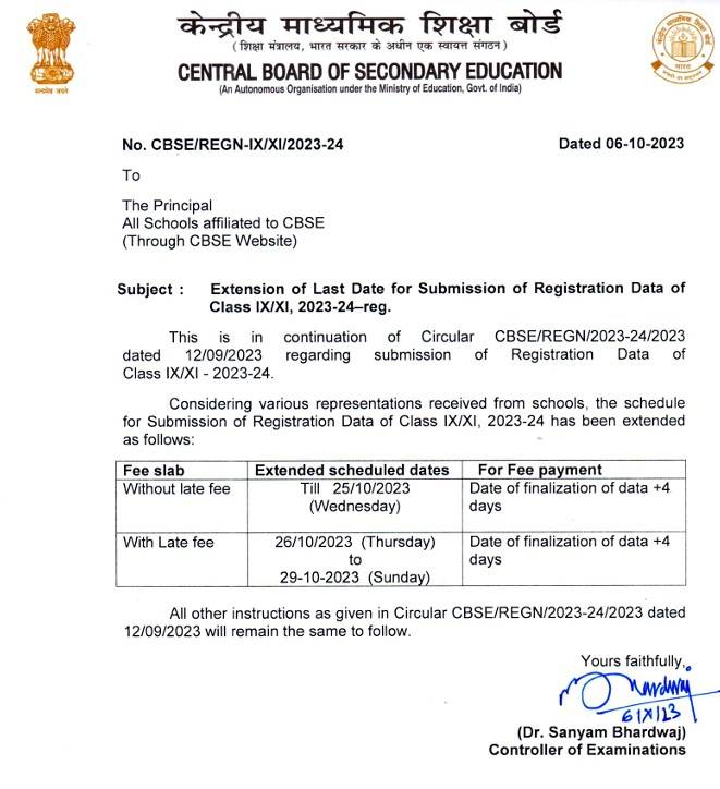 CBSE Class 9, 11 Registration 2023-24: The Central Board of Secondary Education, CBSE has extended the deadline for data submission for Class 9, 11. Candidates must note that the official notice regarding the deadline has been released on the official website of CBSE, i.e. cbse.gov.in. The Board took the decision to extend the deadline after receiving several representations from schools.