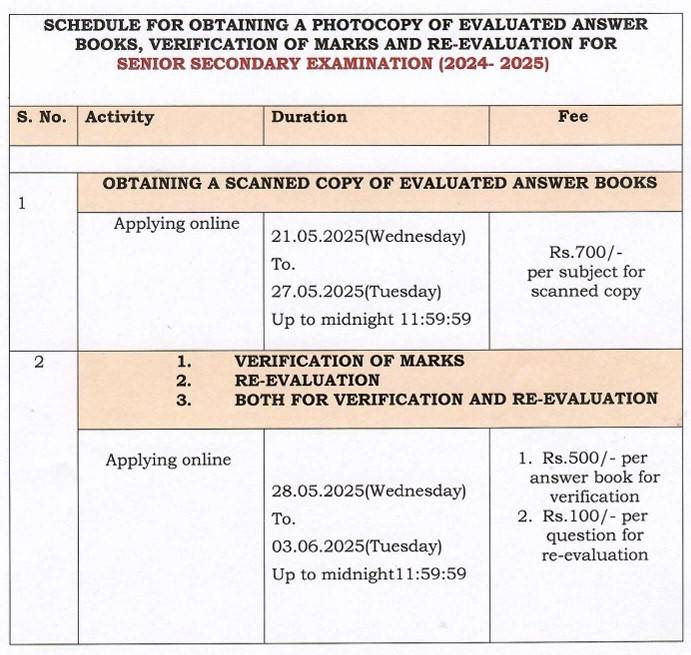 CBSE 12th Revaluation, Photocopy of Answer Sheet Dates
