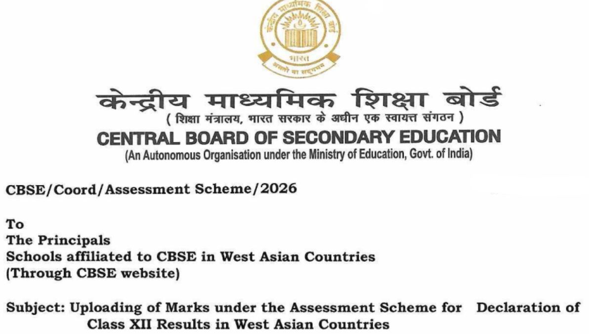 The Central Board of Secondary Education (CBSE) has activated the online portal for uploading class 12 marks for schools in West Asia. CBSE-affiliated schools have to upload the assessment marks from their school logins. This follows cancellation of some exams due to ongoing war between Iran and Israel. As per the notification, Schools in UAE, Saudi Arabia, Oman, Qatar, Bahrain, Kuwait, and Iran must submit student data by April 17, 2026. The board has mentioned that no request for correction because of wrong entry will be considered.