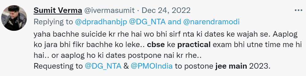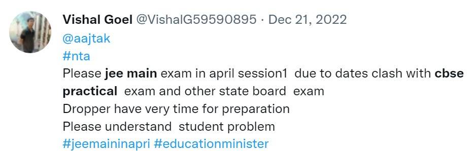 Stating that JEE Mains 2023 Dates clashes with CBSE Practical Exams 2023, students are urging authorities to revised the dates and postpone JEE Mains 2023 after CBSE Board Exams.