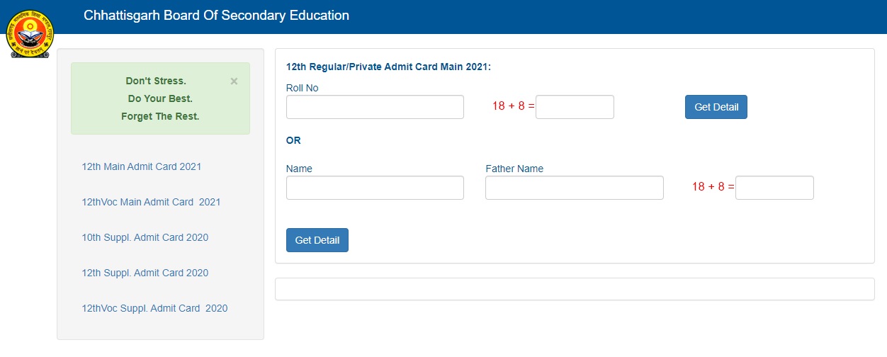 - Check and download CGBSE 12th Admit Card 2021