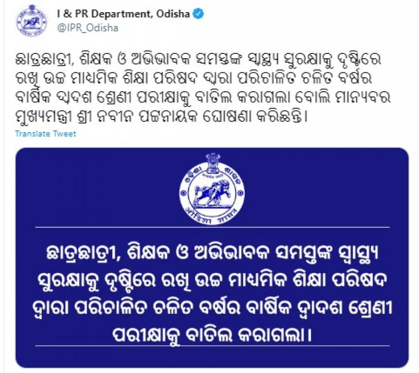 Odisha CM Naveen Patnaik has ordered the cancellation of Class12 exams saying that the life of students is more important than exams.