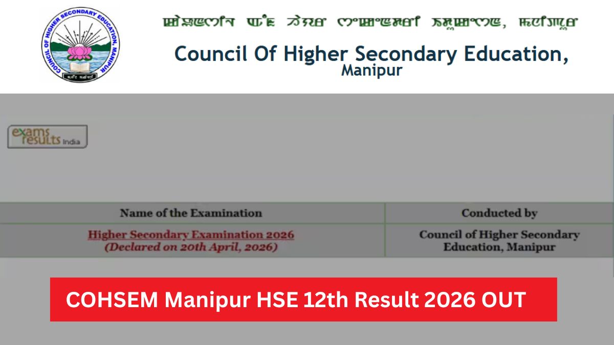 COHSEM Manipur HSE 12th Result 2026 has been declared today. Students can check and download their Manipur 12th marksheet online at cohsem.nic.in using their roll number. Check details here