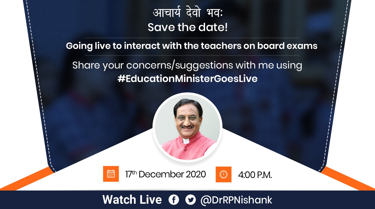 Education Minister Ramesh Pokhriyal Nishank will now be going live to interact with teachers on December 22 about board exams. Read the article to know more.