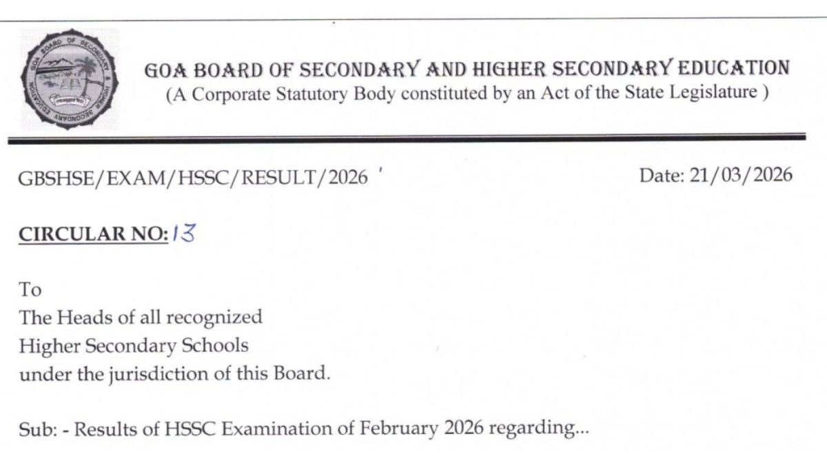 The Goa Board of Secondary and Higher Secondary Education (GBSHSE) has released the dates for Goa HSSC Result 2026 re-evaluation of answer sheet and verification of marks. Students who are not satisfied with their scores in the Goa HSSC result 2026 can now apply for rechecking or request a photocopy of their answer sheet. The board has released the HSSC Goa board result 2026 at 5 PM on March 21, 2026 and released the re-evaluation and verification schedule post result announcement.