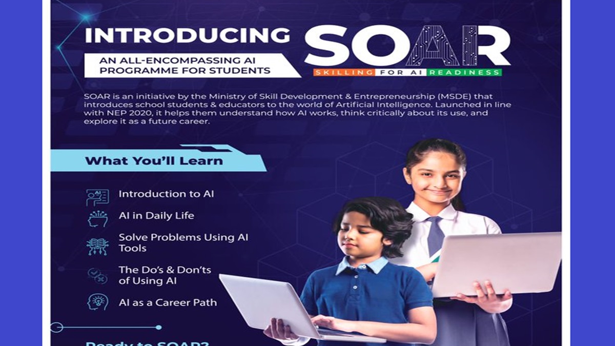 Ministry of Skill Development and Entrepreneurship (MSDE) and Ministry of Education, has launched SOAR, a detailed AI skilling programme for students and educators. Skilling initiative has been launched in line with the National Education Policy, which advocates for future ready learning models and skill integration.