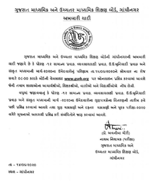 Gujarat Secondary and Higher Secondary Education (GSEB) has announced that it will be declaring the GSEB HSC 12th Arts and Commerce Results 2020 on June 15 at 8 am.