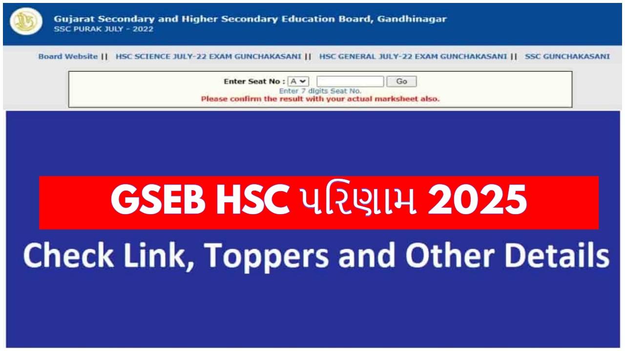 વિદ્યાર્થીઓ બોર્ડની સત્તાવાર વેબસાઇટ દ્વારા HSC પરિણામ 2025 ગુજરાત બોર્ડ ચકાસી અને ડાઉનલોડ કરી શકે છે. 12મા પરિણામ 2025 ગુજરાત બોર્ડની લિંક gseb.org પર ઉપલબ્ધ છે.