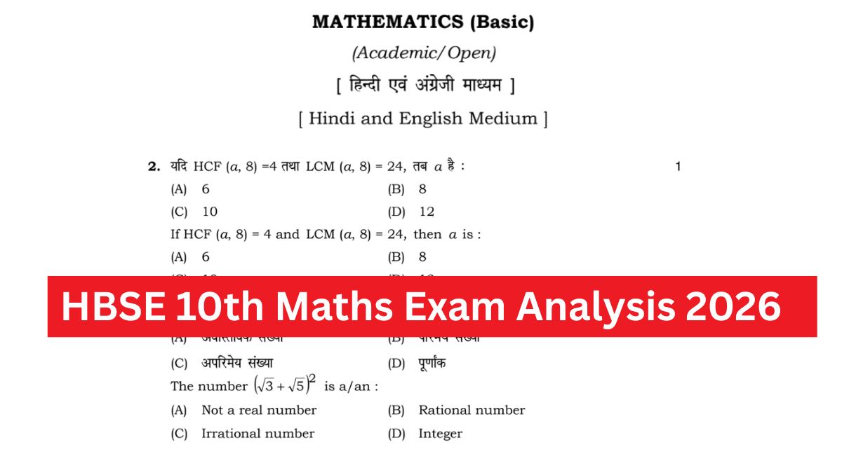 HBSE 10 Maths Paper Analysis 2026: Board of School Education, Haryana conducted HBSE Class 10 Mathematics both Standard & Basic exam today from 12:30 to 3:30 PM. Based on initial feedback from students who took board exams, many shared that HBSE 10th Maths paper followed expected style and format. Some students mentioned that numerical questions took time.