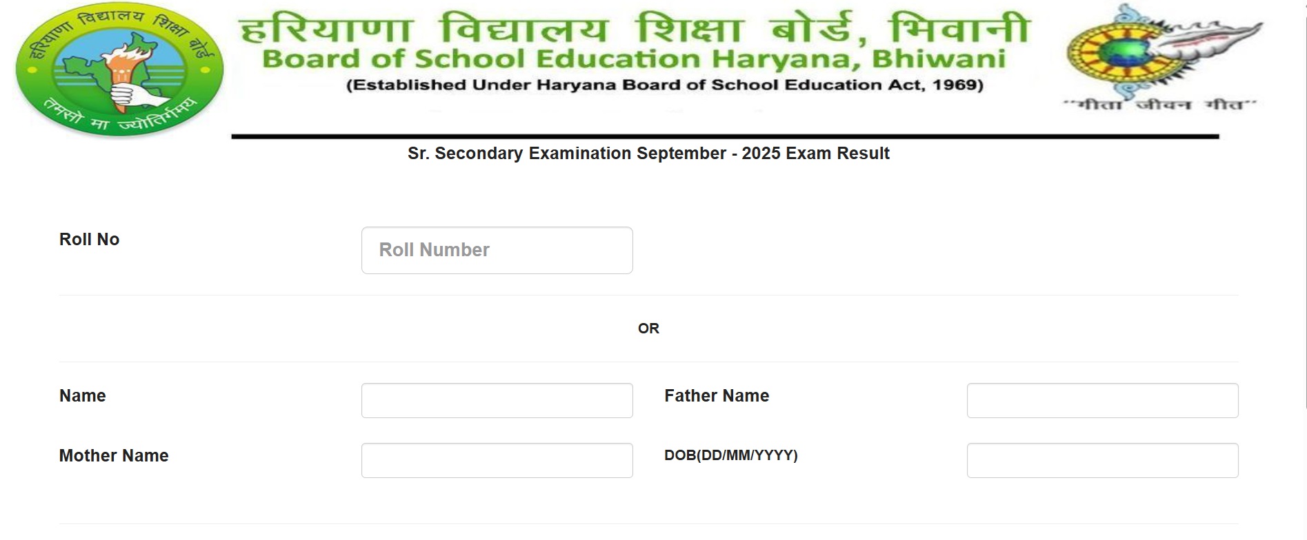 - Visit the official website of the Haryana Board at https://bsehexam2017.in/SRSECSEP25/MainResult.aspx