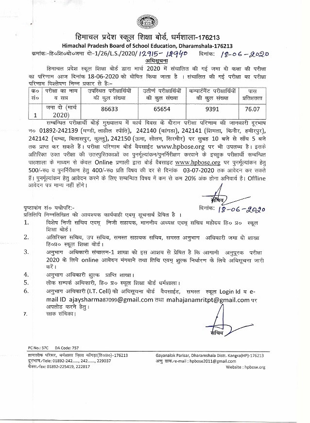 The Himachal Pradesh Board of School Education (HPBOSE) has announced that the HP Board Class 12th students who wish to apply for re-evaluation can do so until July 3. The Board had declared the HP Board Class 12th Result 2020 on June 18, 2020, at 11.30 am.
