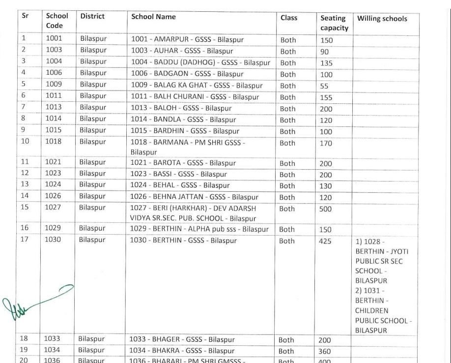 The students of the schools listed under the column "Willing Schools" shall appear in the Examination Centres indicated against their names, as the concerned schools have conveyed their consent to permit their