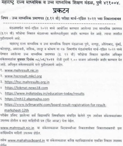 Maharashtra Education Minister Varsha Gaikwad had earlier informed via social media that the board will declare the 12th result 2022 Maharashtra board on June 8, 2022.