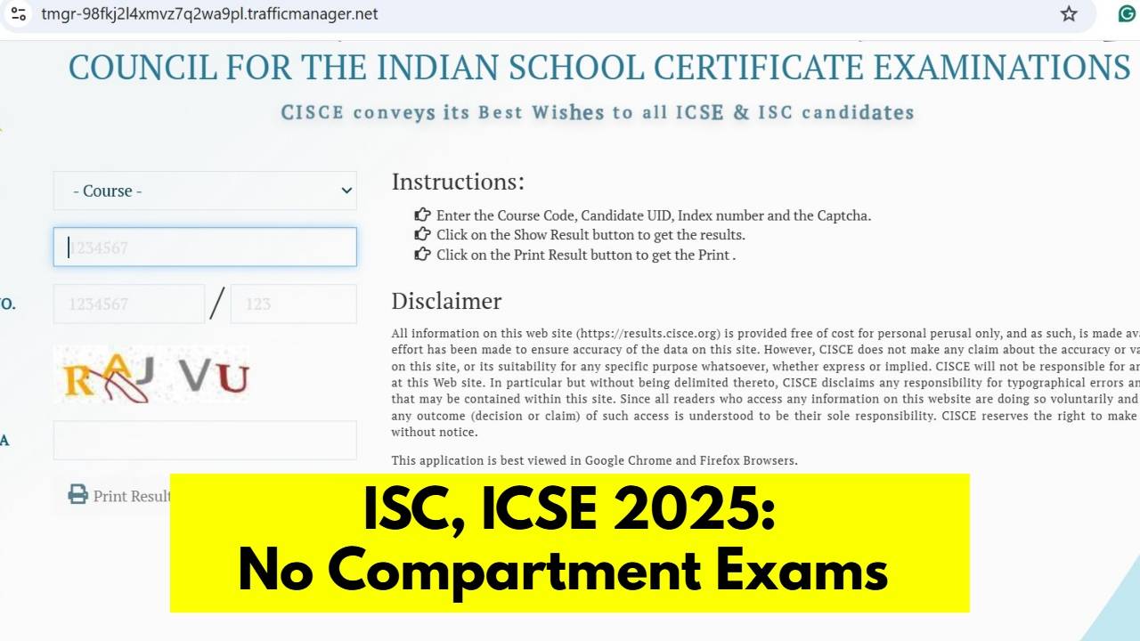 CISCE has discontinued the ISC, ICSE Compartment Exam Module. ICSE Result 2025 and ISC Result 2025 are out cisce.org. The online recheck window for ICSE and ISC 2025 will remain open from April 30 to May 4, 2025.