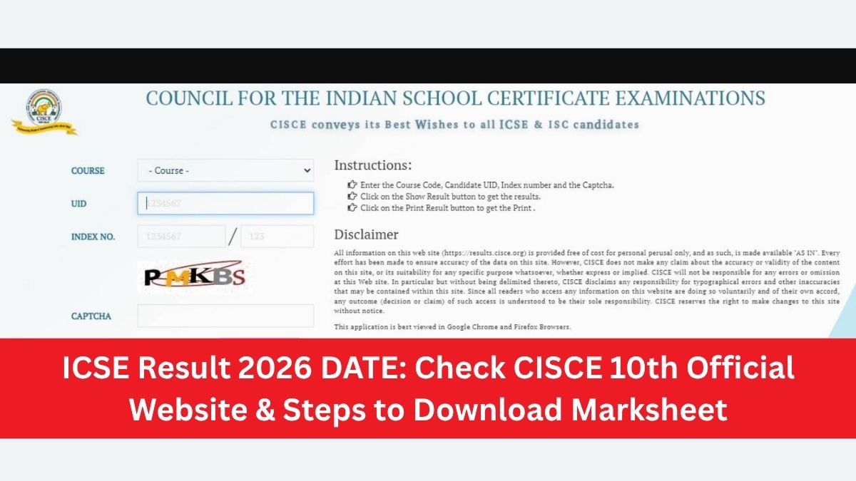 ICSE Result 2026 DATE: Council for the Indian School Certificate Examinations (CISCE) is expected to release ICSE result for class 10 online in April 2026. As per past trends and latest updates, ICSE Class 10 result is expected to be announced by last week of April 2026. According to media updates, ICSE 10th result may be declared around April 28, 2026. However, there has been no official update regarding ICSE 10th result 2026 date and time, as of now.